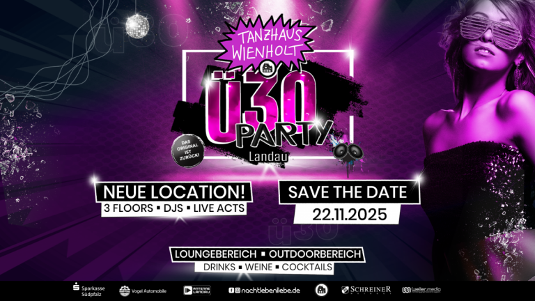 Es startet die Neuauflage der Partyreihe „Ü30 Party Landau“ am 22.11.25 in neuer Location